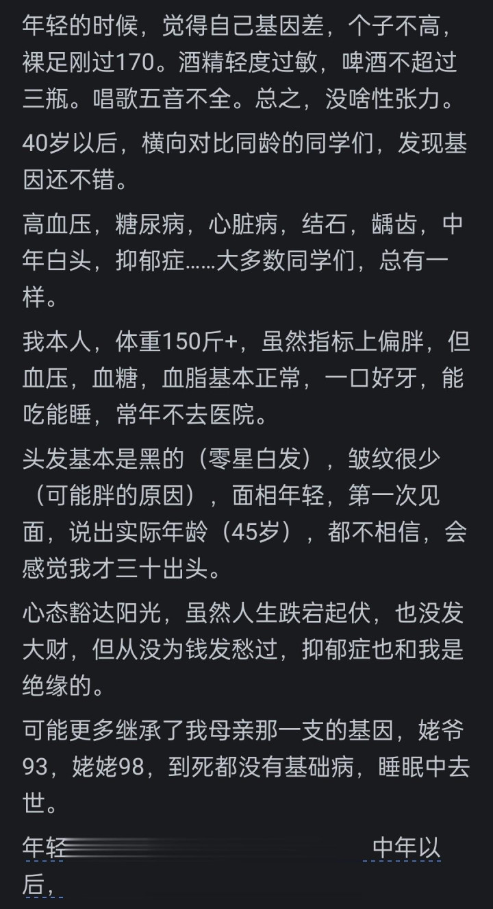 基因不仅决定了我们的外貌、身高、智力等特征,还在很大程度上影响着我们的健康状况。那么,拥有“好基因”是一种怎样的体验呢?